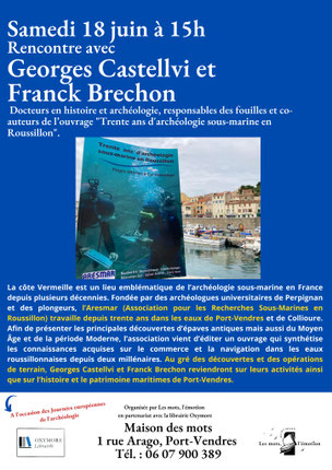 Claude Fabre, qui vient d'ouvrir la librairie indépendante Oxymore, à Port-Vendres, a invité l'Aresmar à l'occasion des Journées Nationales de l'Archéologie.